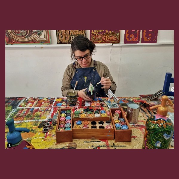 Ceci Calvet, fileteadora porteña. Actual presidenta de la Asociación de Fileteadores. Fundadora de La Filetería -espacio de filete porteño ubicado en San Telmo-. Estudiante de filete porteño desde 2015 dedicándose 100% al oficio desde 2019.