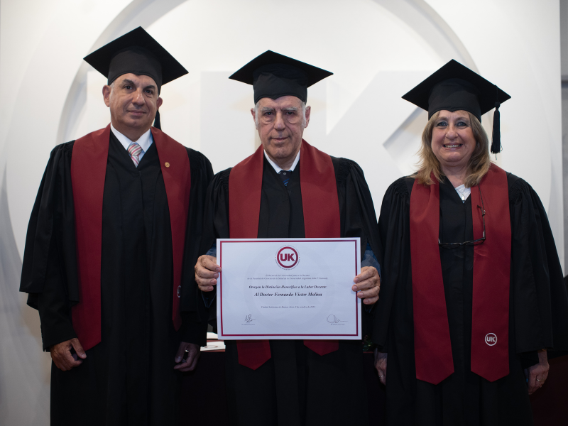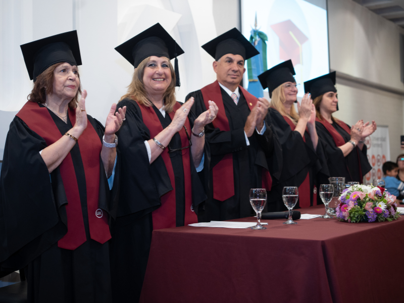 El acto fue presidido por el Rector, Mg. Alejandro Gómez, la Decana de la Facultad de Ciencias de la Salud, Dra. Adriana Losavio; la Directora de la Licenciatura en Química, Dra. Natacha Mirensky; la Jefa del Departamento de Biología, Dra. Nuri Rinaldi, y la Dra. Ana María Oliva, Coordinadora del Depto. de Odontología Básica y Clínica.