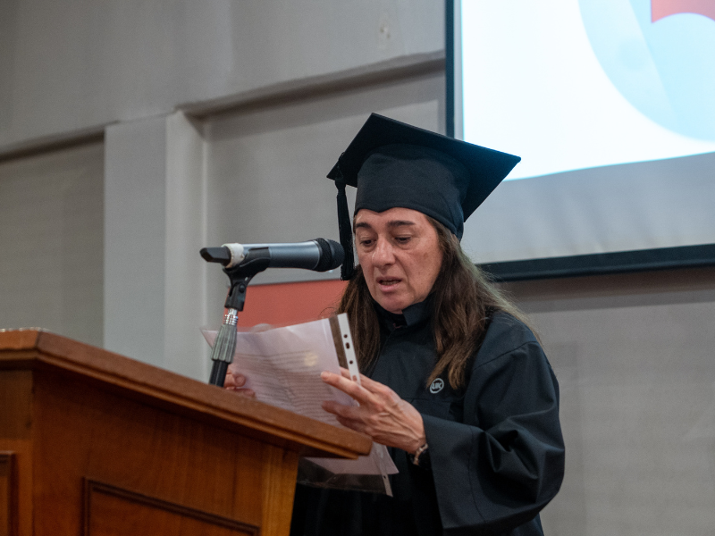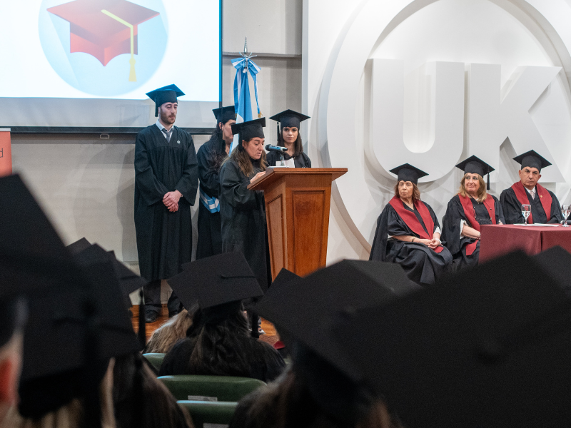 En representación de los/as egresados/as, la Lic. Graciela Depaola, graduada de la Licenciatura en Química, compartió unas palabras de agradecimiento y orgullo por el camino recorrido junto a la comunidad universitaria.