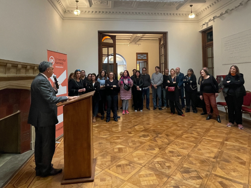 Durante la jornada, el Rector Mg. Alejandro Gómez compartió unas palabras con los presentes, repasó los principales proyectos que estamos llevando adelante y adelantó los desafíos y oportunidades que se vienen para la Universidad Kennedy.