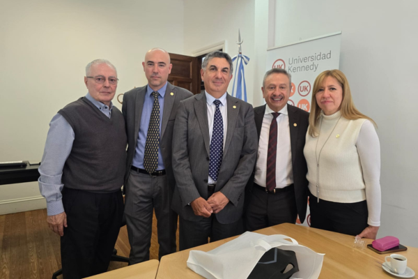 Participaron del encuentro el Mg. Alejandro Gómez, Rector de la Universidad Kennedy; el Dr. Oscar Cámpoli, Decano de la Facultad de Ciencias Económicas y Empresariales; y los Licenciados Claudia Acuña y Alberto Cichero, responsables del área de Internacionalización.